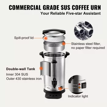 65-Cup Stainless Steel Coffee Urn with Rapid Brewing & Easy Cleaning