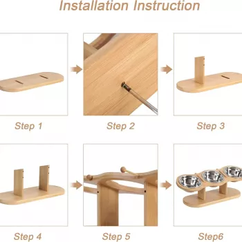 Adjustable Wooden Pet Bowl Stand with 3 Stainless Steel Bowls for Cats & Dogs