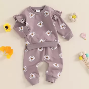 Baby Girl Daisy Print Outfit Long Sleeve Sweatshirt and Pants Set (0-3Y)