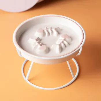 Elevated Ceramic Slow Feed Cat & Dog Bowl with Stand