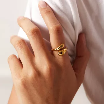 Golden Feather Design Adjustable Ring - Elegant Women's Fashion Jewelry