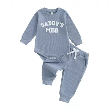 Newborn Baby Boy Fall Outfit Set - Embroidered Long Sleeve Romper & Pants