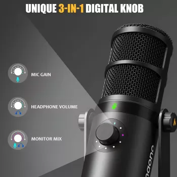 Professional USB/XLR Dynamic Microphone with Touch Mute & Studio Controls