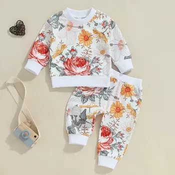 Toddler Girl Fall Floral Sweatshirt and Elastic Pants 2-Piece Outfit