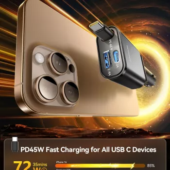 Ultra-Slim 57W Retractable Fast Car Charger USB-C & USB for iPhone & Android