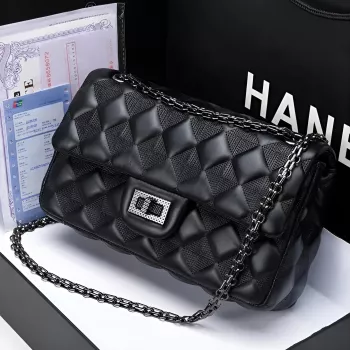 Vintage Diamond Chain Leather Shoulder Bag – Elegant Crossbody for Women