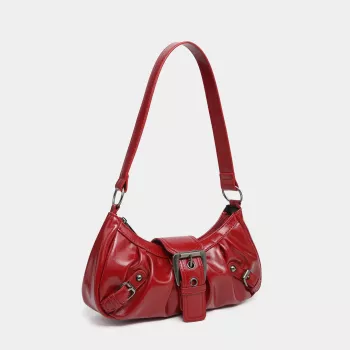 Vintage Maillard Style Rivet Shoulder Bag – Retro Y2K Leather Saddle Handbag