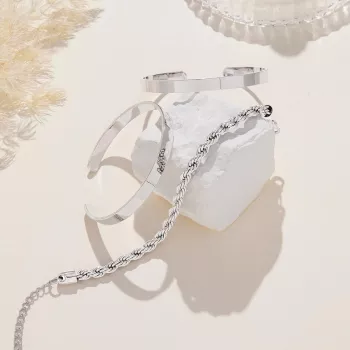 Waterproof 14K Gold Plated Stainless Steel Bangle Bracelet Set for Women